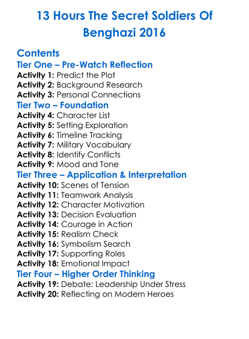 13 Hours The Secret Soldiers Of Benghazi 2016 Worksheet Activity Booklet
