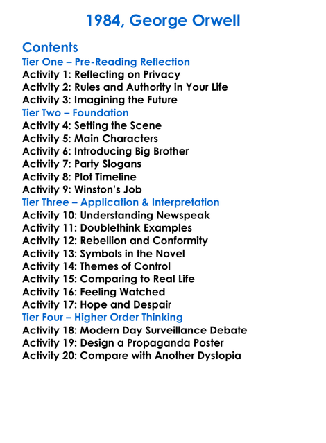 1984 George Orwell Worksheet Activity Booklet
