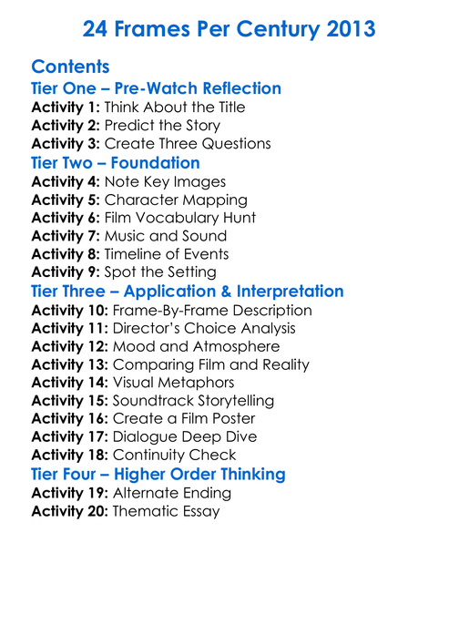 24 Frames Per Century 2013 Worksheet Activity Booklet