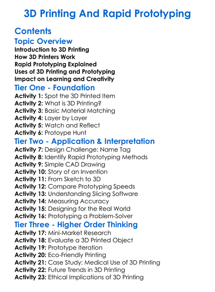 3D Printing And Rapid Prototyping Worksheet Activity Booklet