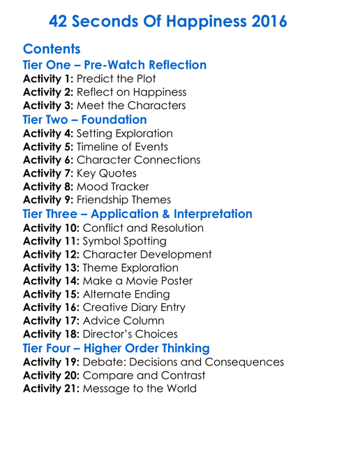 42 Seconds Of Happiness 2016 Worksheet Activity Booklet