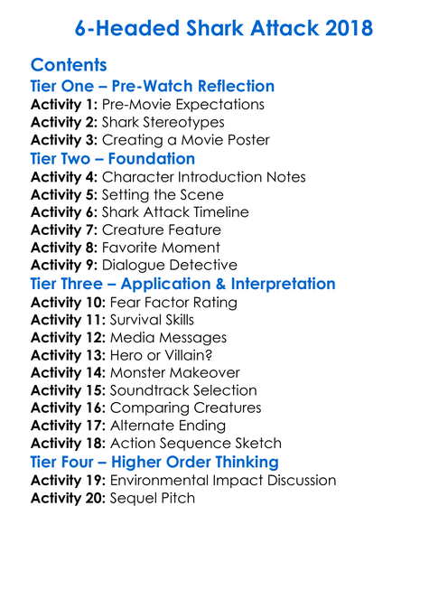6-Headed Shark Attack 2018 Worksheet Activity Booklet