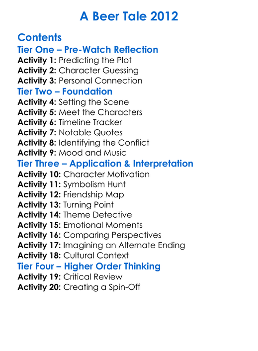 A Beer Tale 2012 Worksheet Activity Booklet
