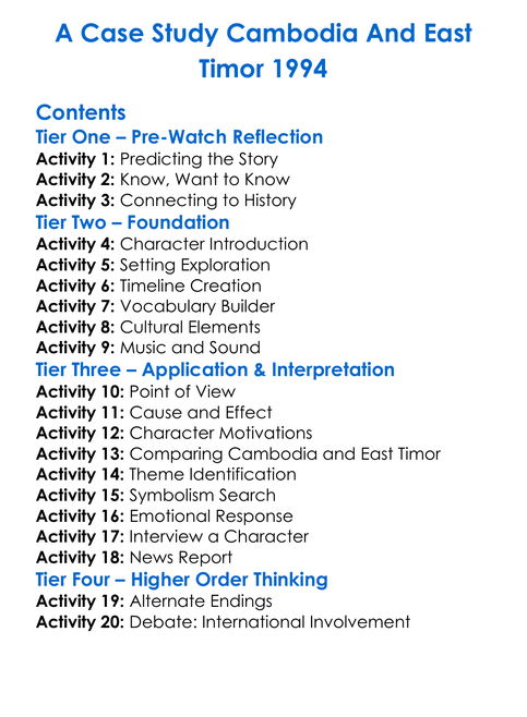 A Case Study Cambodia And East Timor 1994 Worksheet Activity Booklet