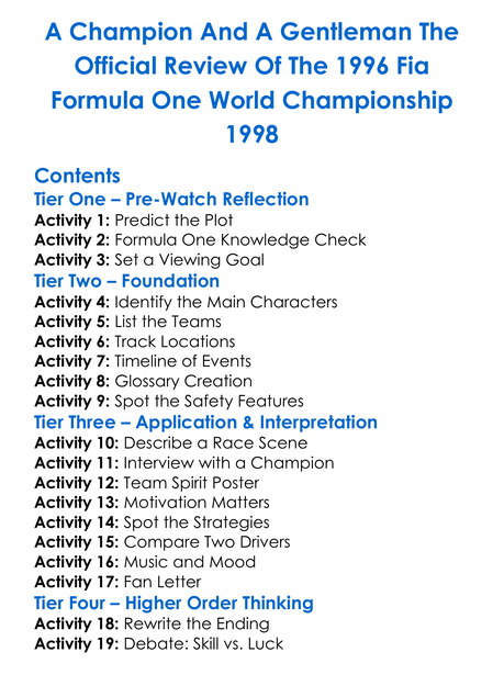 A Champion And A Gentleman The Official Review Of The 1996 Fia Formula One World Championship 1998 Worksheet Activity Booklet