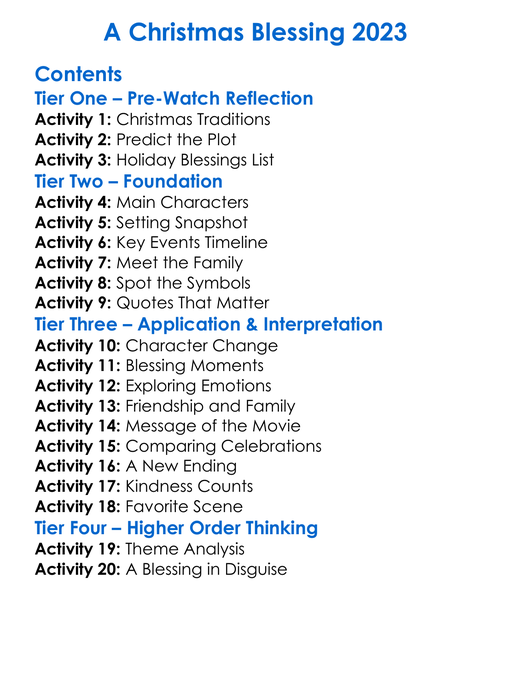 A Christmas Blessing 2023 Worksheet Activity Booklet