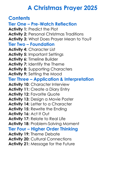 A Christmas Prayer 2025 Worksheet Activity Booklet