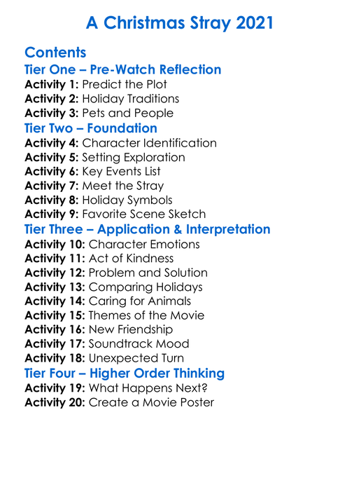 A Christmas Stray 2021 Worksheet Activity Booklet