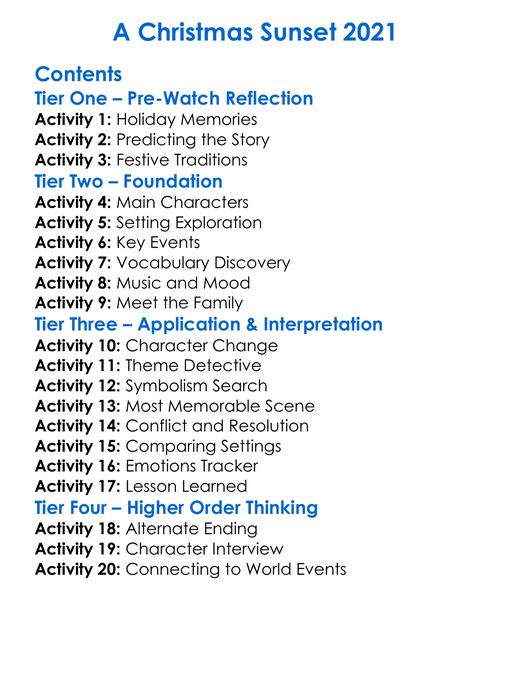 A Christmas Sunset 2021 Worksheet Activity Booklet