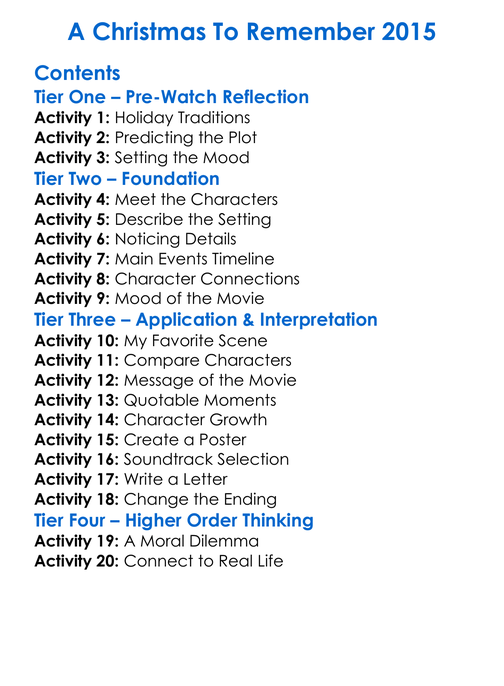 A Christmas To Remember 2015 Worksheet Activity Booklet