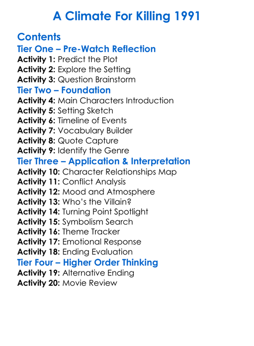 A Climate For Killing 1991 Worksheet Activity Booklet