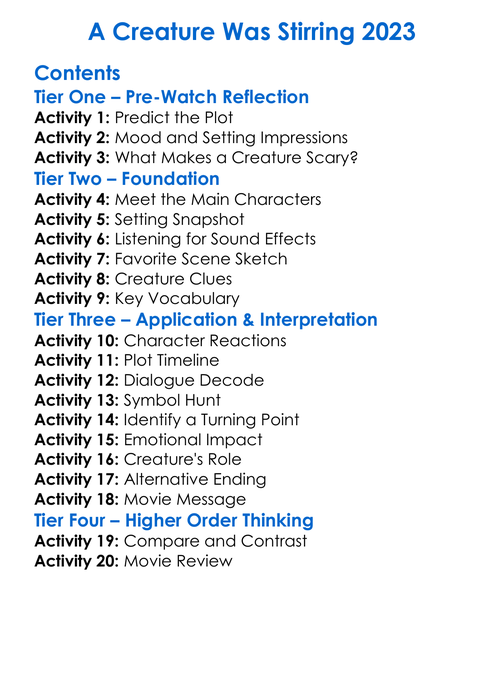 A Creature Was Stirring 2023 Worksheet Activity Booklet