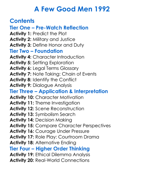 A Few Good Men 1992 Worksheet Activity Booklet