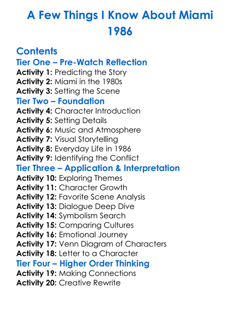 A Few Things I Know About Miami 1986 Worksheet Activity Booklet