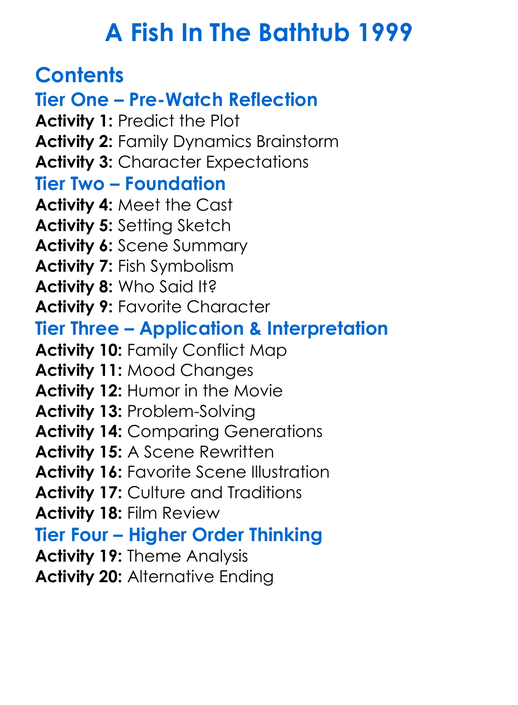 A Fish In The Bathtub 1999 Worksheet Activity Booklet