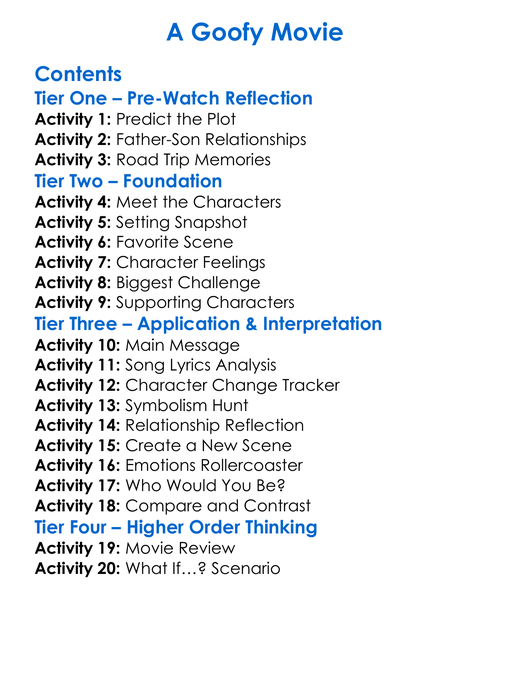 A Goofy Movie Worksheet Activity Booklet