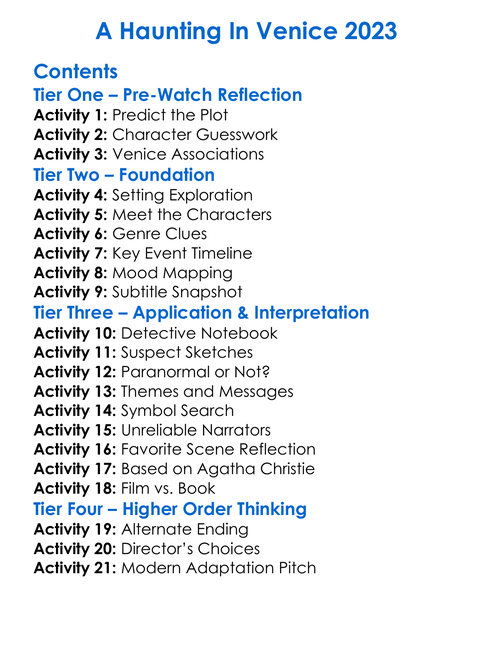 A Haunting In Venice 2023 Worksheet Activity Booklet