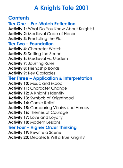 A Knights Tale 2001 Worksheet Activity Booklet