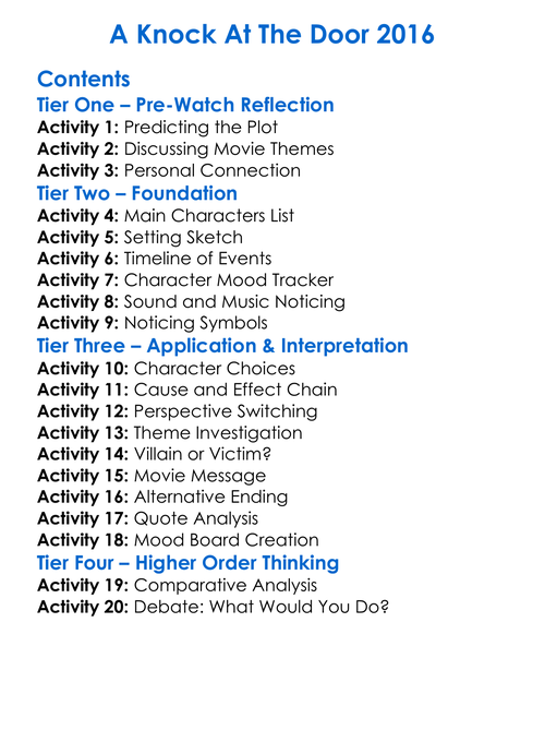 A Knock At The Door 2016 Worksheet Activity Booklet