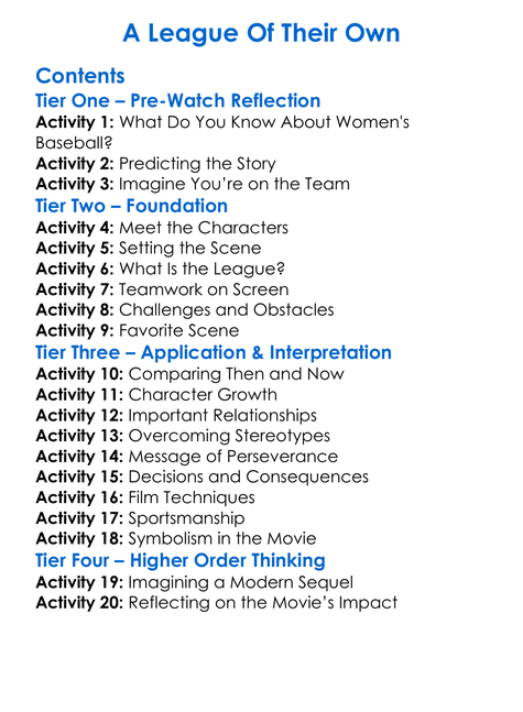 A League Of Their Own Worksheet Activity Booklet