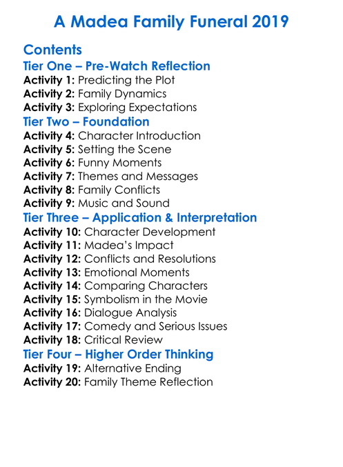 A Madea Family Funeral 2019 Worksheet Activity Booklet