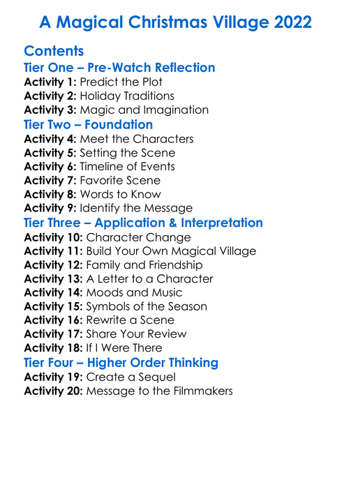 A Magical Christmas Village 2022 Worksheet Activity Booklet