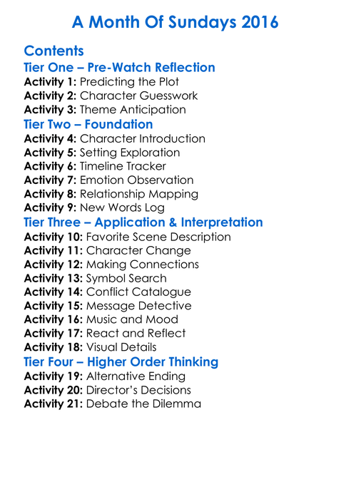 A Month Of Sundays 2016 Worksheet Activity Booklet