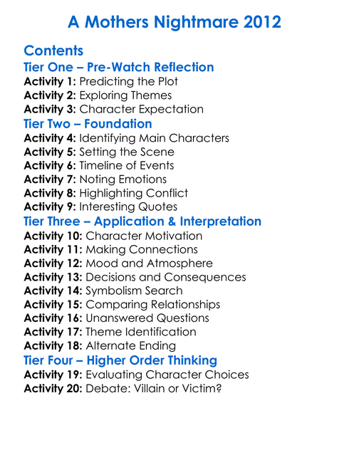 A Mothers Nightmare 2012 Worksheet Activity Booklet