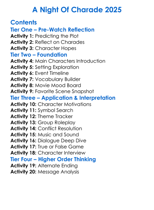 A Night Of Charade 2025 Worksheet Activity Booklet