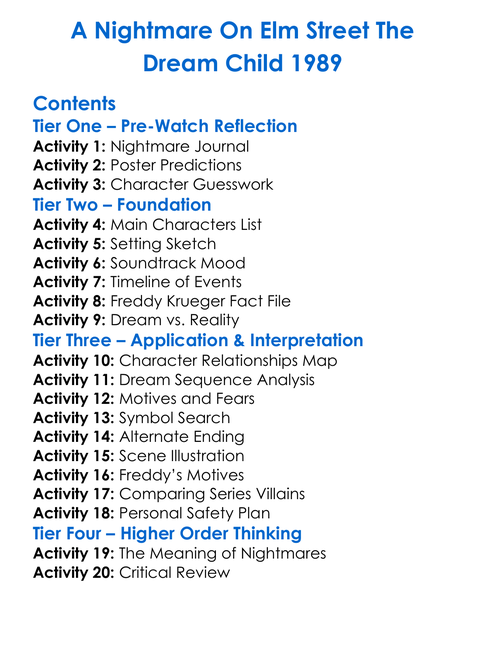A Nightmare On Elm Street The Dream Child 1989 Worksheet Activity Booklet