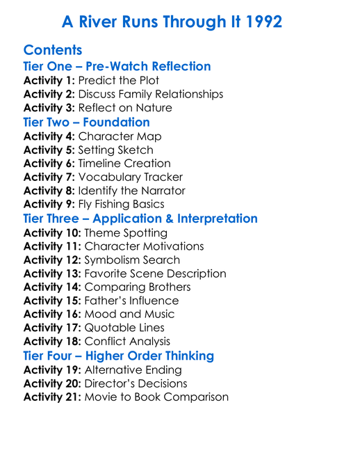 A River Runs Through It 1992 Worksheet Activity Booklet