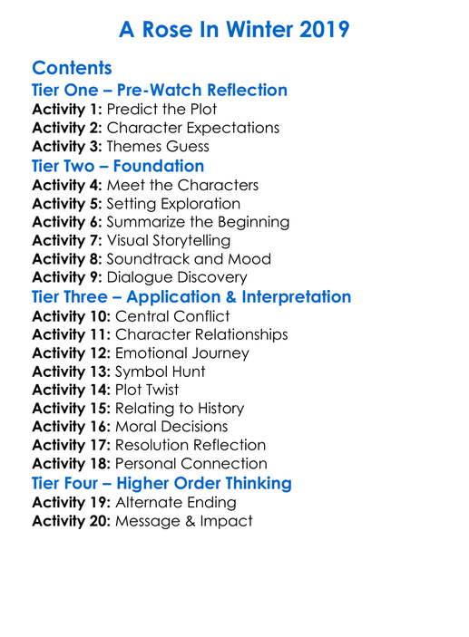 A Rose In Winter 2019 Worksheet Activity Booklet
