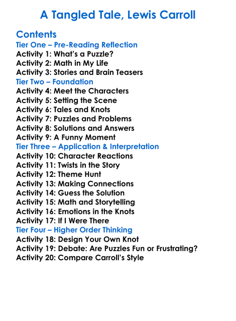 A Tangled Tale Lewis Carroll Worksheet Activity Booklet