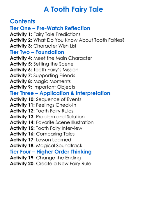 A Tooth Fairy Tale Worksheet Activity Booklet