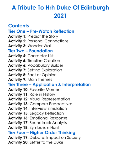 A Tribute To Hrh Duke Of Edinburgh 2021 Worksheet Activity Booklet