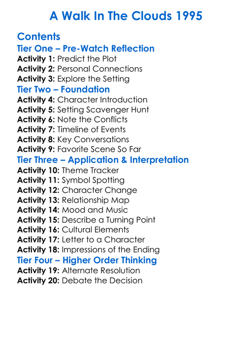 A Walk In The Clouds 1995 Worksheet Activity Booklet