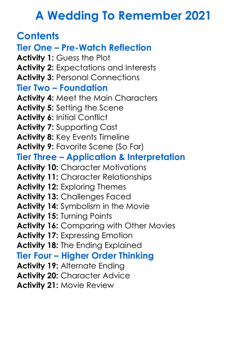A Wedding To Remember 2021 Worksheet Activity Booklet
