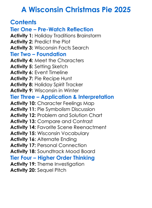 A Wisconsin Christmas Pie 2025 Worksheet Activity Booklet