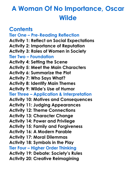 A Woman Of No Importance Oscar Wilde Worksheet Activity Booklet