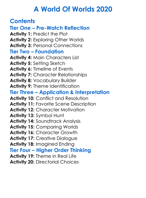 A World Of Worlds 2020 Worksheet Activity Booklet