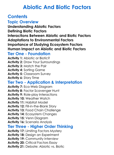 Abiotic And Biotic Factors Worksheet Activity Booklet