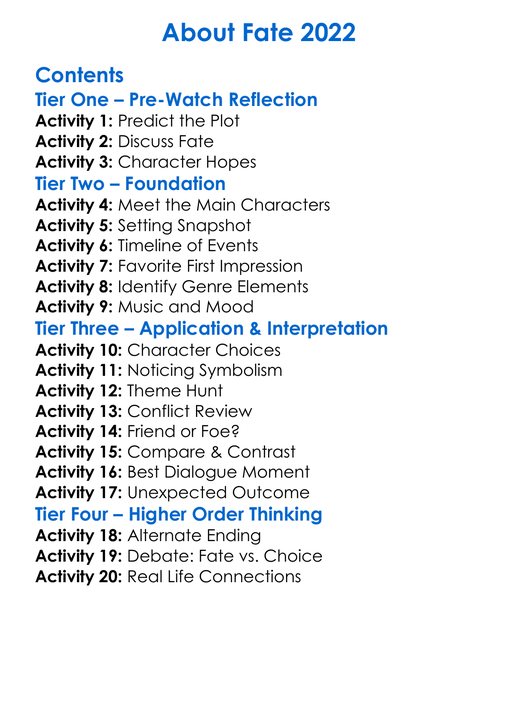 About Fate 2022 Worksheet Activity Booklet