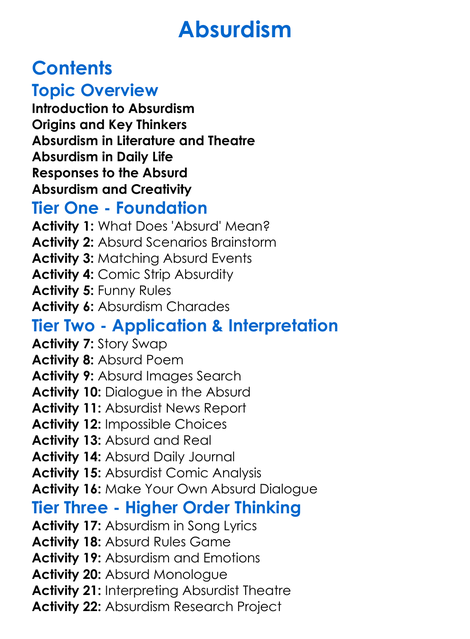 Absurdism Worksheet Activity Booklet