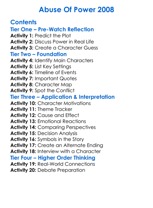 Abuse Of Power 2008 Worksheet Activity Booklet