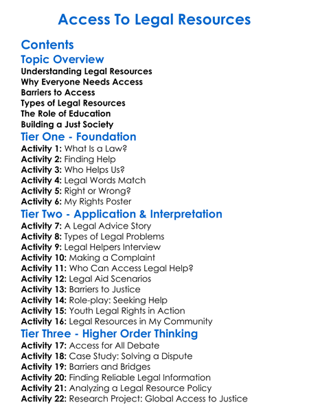 Access To Legal Resources Worksheet Activity Booklet