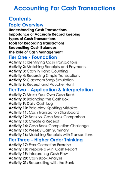 Accounting For Cash Transactions Worksheet Activity Booklet