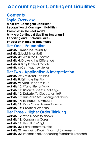 Accounting For Contingent Liabilities Worksheet Activity Booklet