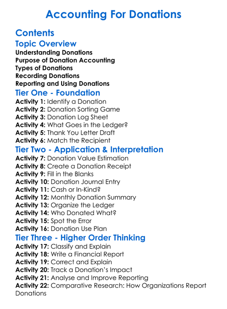 Accounting For Donations Worksheet Activity Booklet