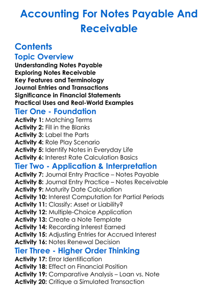 Accounting For Notes Payable And Receivable Worksheet Activity Booklet