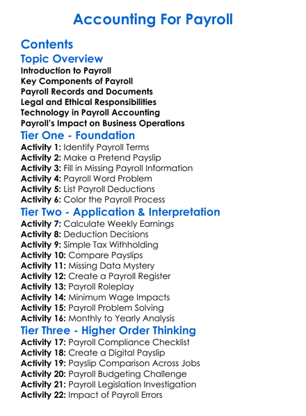 Accounting For Payroll Worksheet Activity Booklet